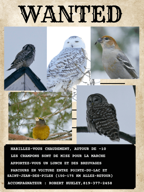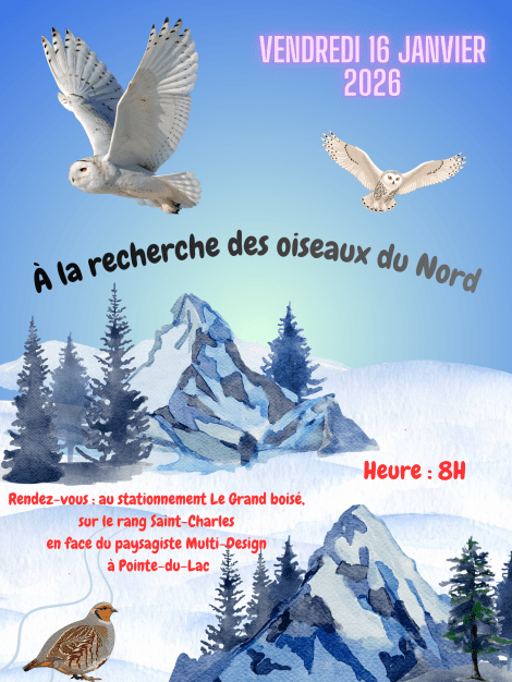 Vendredi 16 janvier 2026 – À la recherche des oiseaux du Nord 14 janvier 2026 · par cluboiseauxtr · dans Janvier, Sorties du club. · Informations pour la sortie Cliquer pour partager sur X(ouvre dans une nouvelle fenêtre) X Cliquez pour partager sur Facebook(ouvre dans une nouvelle fenêtre) Facebook Cliquer pour envoyer un lien par e-mail à un ami(ouvre dans une nouvelle fenêtre) E-mail Articles similaires