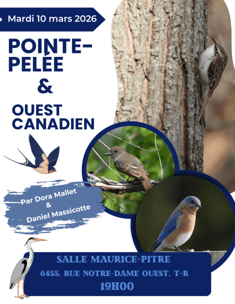 Mardi 10 mars 2025 – Pointe-Pelée et l’ouest canadien 6 mars 2026 · par cluboiseauxtr · dans Conférences et réunions, Mars. · Conférence du COTR Partager sur X(ouvre dans une nouvelle fenêtre) X Partager sur Facebook(ouvre dans une nouvelle fenêtre) Facebook Envoyer un lien par e-mail à un ami(ouvre dans une nouvelle fenêtre) E-mail Articles similaires